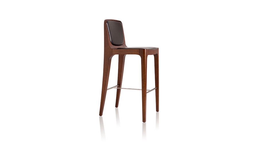 Materiais: Estrutura em madeira maciça. Assento e encosto estofados, captonados ou em rattan. Apoio dos pés em inox.