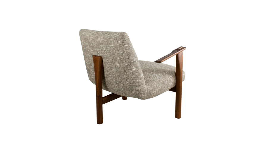 A poltrona Leblon traz o apuro da marcenaria artesanal na estrutura de três pernas, armada em imbuia maciça. Como é característico na produção do designer, detalhes trabalhados na madeira carregam delicadas surpresas: aqui, os suportes frontais foram torneados em tamanho maior na parte superior e conectados aos braços por encaixes minuciosos, reforçando a beleza do trabalho manual. - Casa Vogue