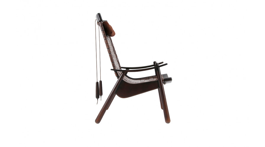 A família Leme de cadeiras e poltronas, criada pelo designer Alfio Lisi, tem um desenho sensual, que aparenta movimento. As peças são feitas com madeira em pedaços pequenos, torneada e fixada por sistemas tradicionais de encaixe. O assento e o encosto têm percintas em couro natural.