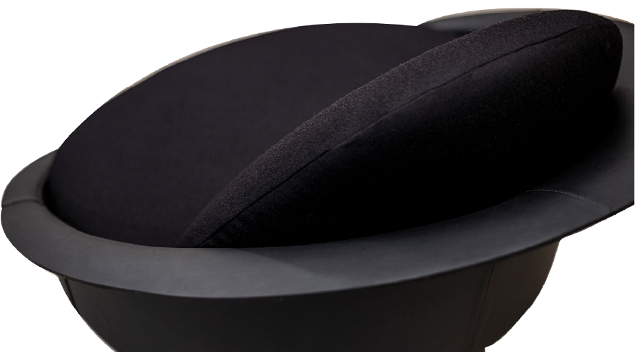 Poltrona giratória com estrutura em fibra de vidro revestida com couro remasterizado, base em metal pintado, almofada de encosto e assento em couro ou tecido.