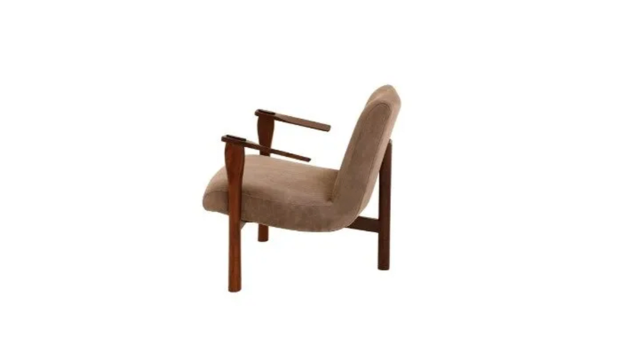 A poltrona Leblon traz o apuro da marcenaria artesanal na estrutura de três pernas, armada em imbuia maciça. Como é característico na produção do designer, detalhes trabalhados na madeira carregam delicadas surpresas: aqui, os suportes frontais foram torneados em tamanho maior na parte superior e conectados aos braços por encaixes minuciosos, reforçando a beleza do trabalho manual. - Casa Vogue